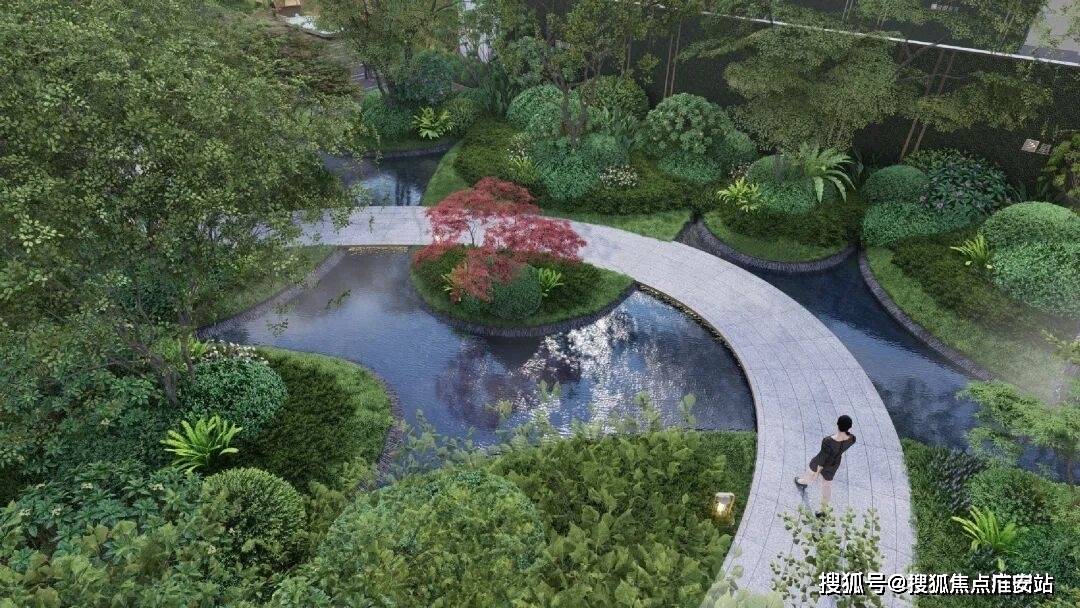 项目连系异形山坡、灌木、从题巷道、景不雅树阵,